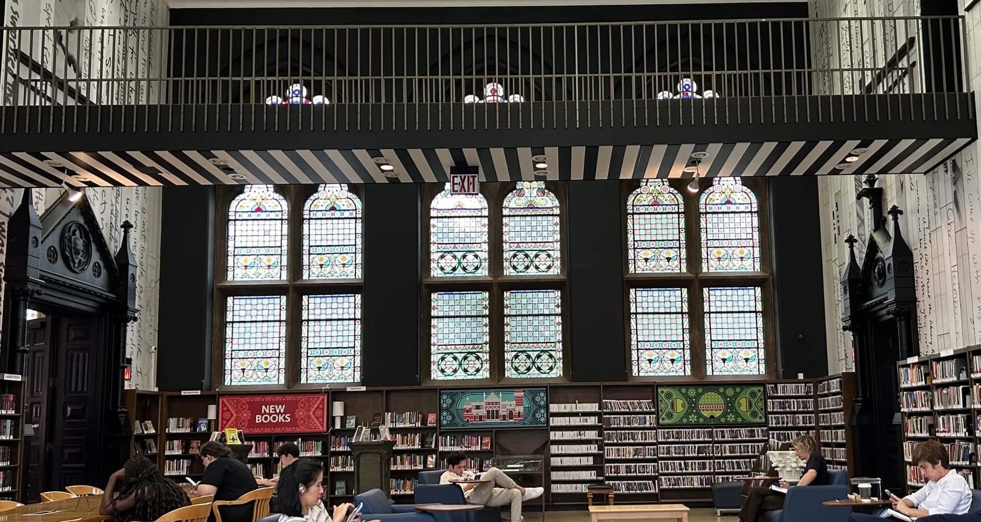 宇宙说好的往西村骑车10分钟就到了。小周发现了她这辈子见过最漂亮的哥特式图书馆:有钟楼、旋转楼梯、玻璃花窗、希腊雕像和书。像这样的公共图书馆,城里还有92家。